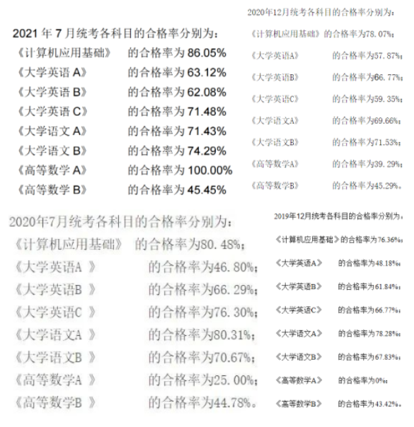 且历年来,大学语文的合格率均在70%以上,意味着参加网教统考的考生超过三分之二都合格了。